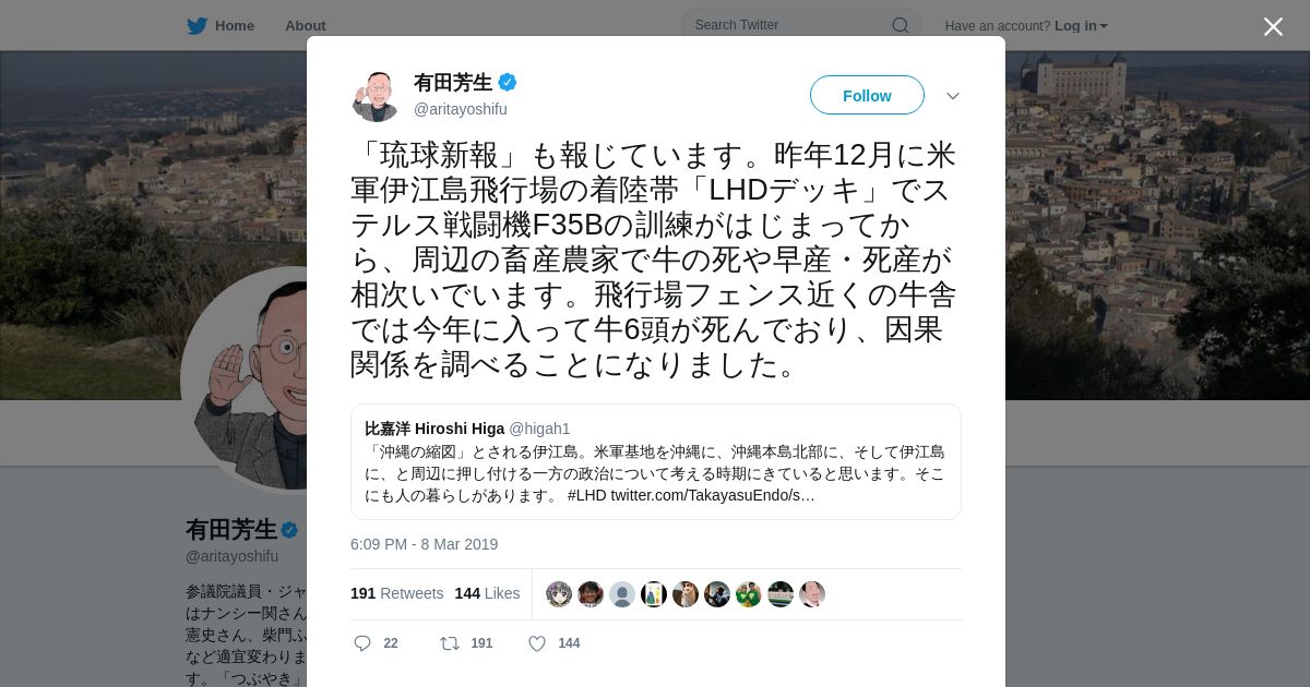 取得元URL: https://twitter.com:443/aritayoshifu/status/1104202524511297541