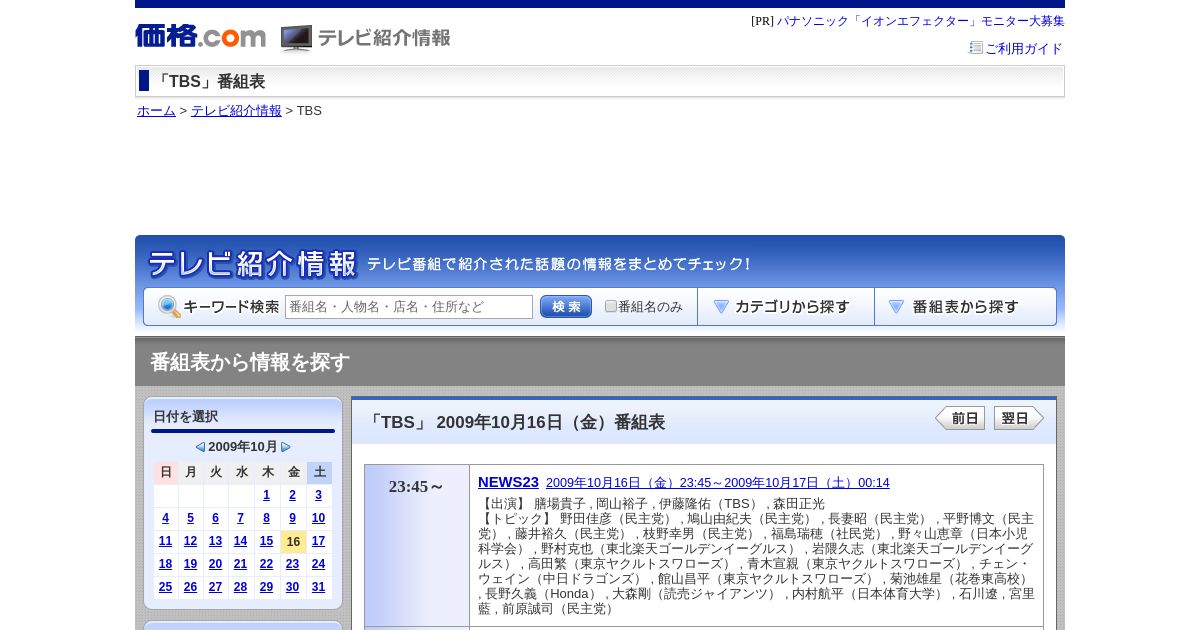 取得元URL: https://kakaku.com:443/tv/channel=6/date=20091016/