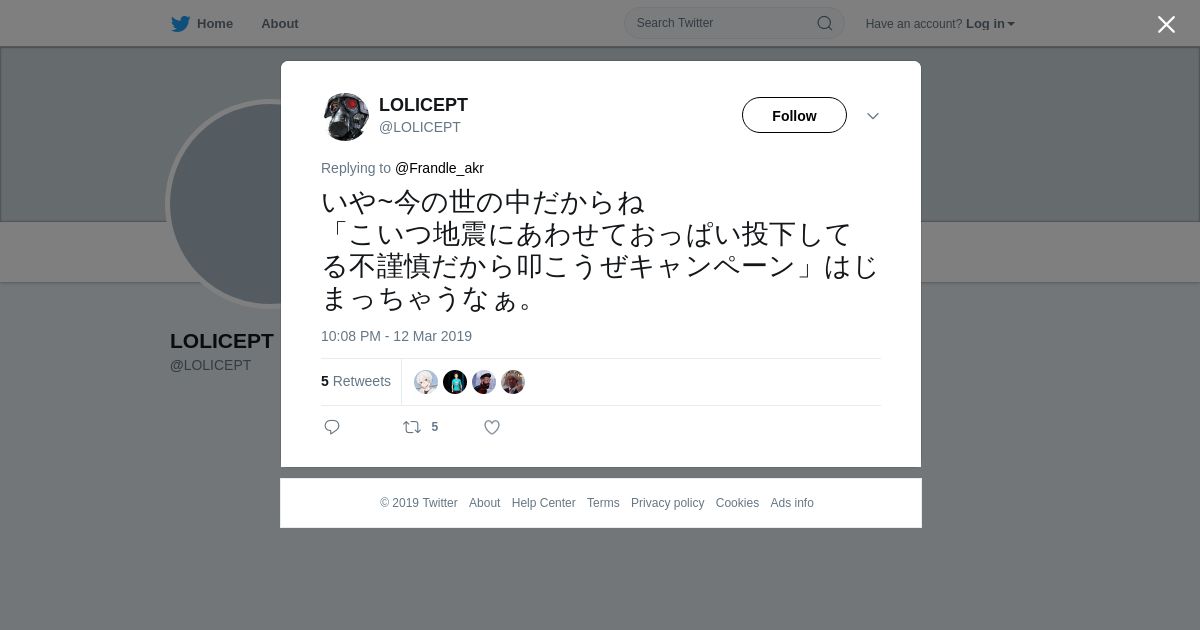 取得元URL: https://twitter.com:443/LOLICEPT/status/1105697164552892416