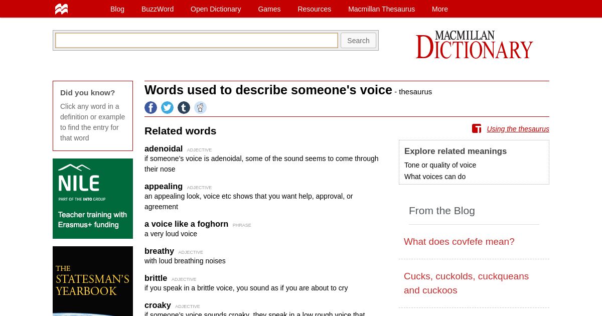 https://www.macmillandictionary.com:443/thesaurus-category/british/words-used-to-describe-someone-s-voice