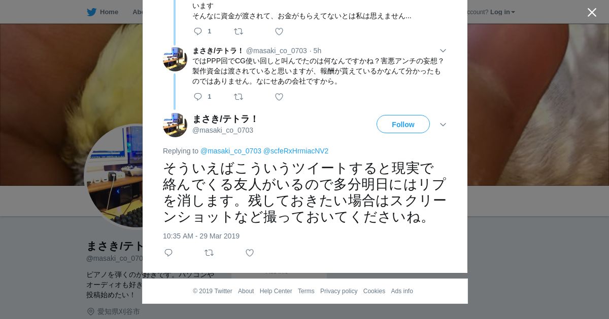 取得元URL: https://twitter.com:443/masaki_co_0703/status/1111683242480943105