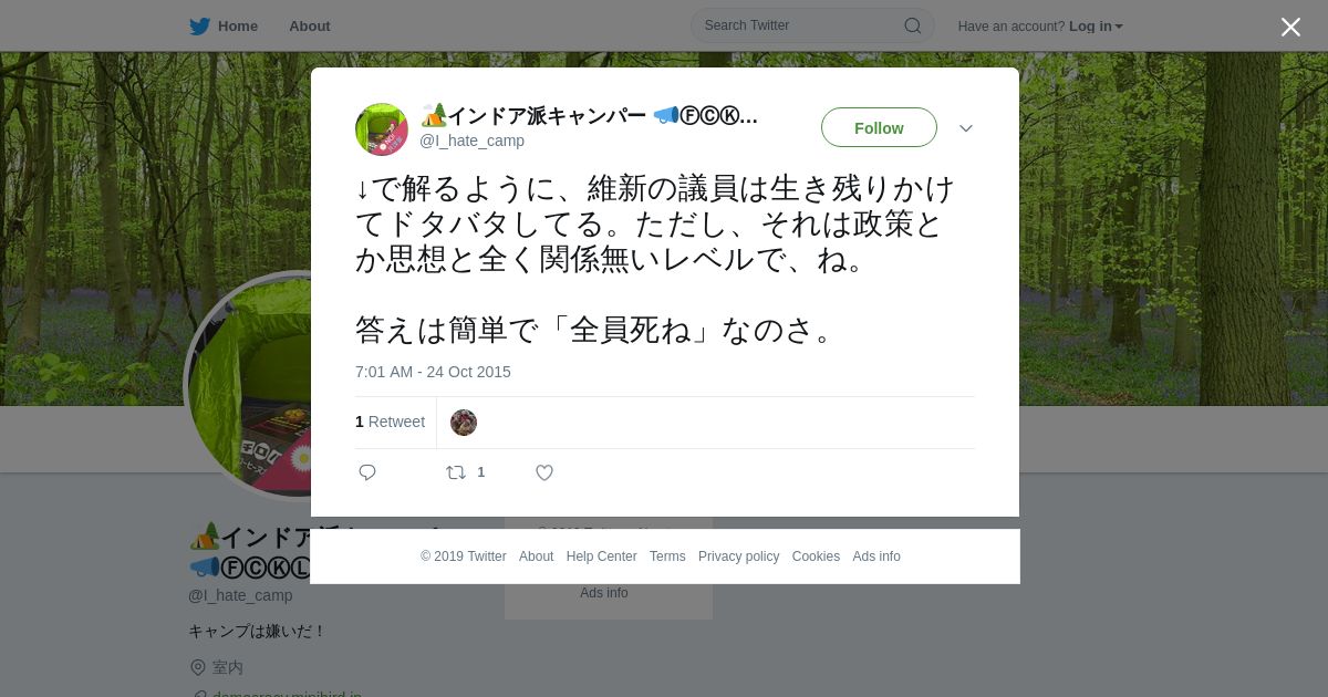 取得元URL: https://twitter.com:443/I_hate_camp/status/657919797577969664