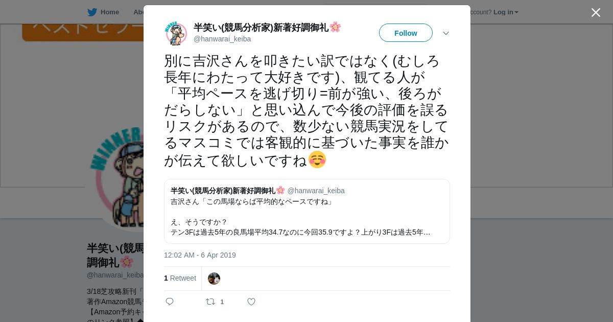 https://twitter.com:443/hanwarai_keiba/status/1114423089431900160