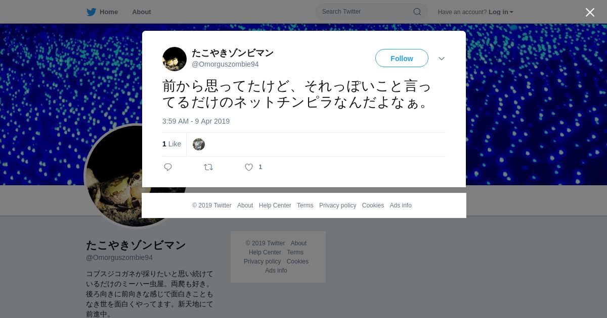 取得元URL: https://twitter.com:443/Omorguszombie94/status/1115570028605108224