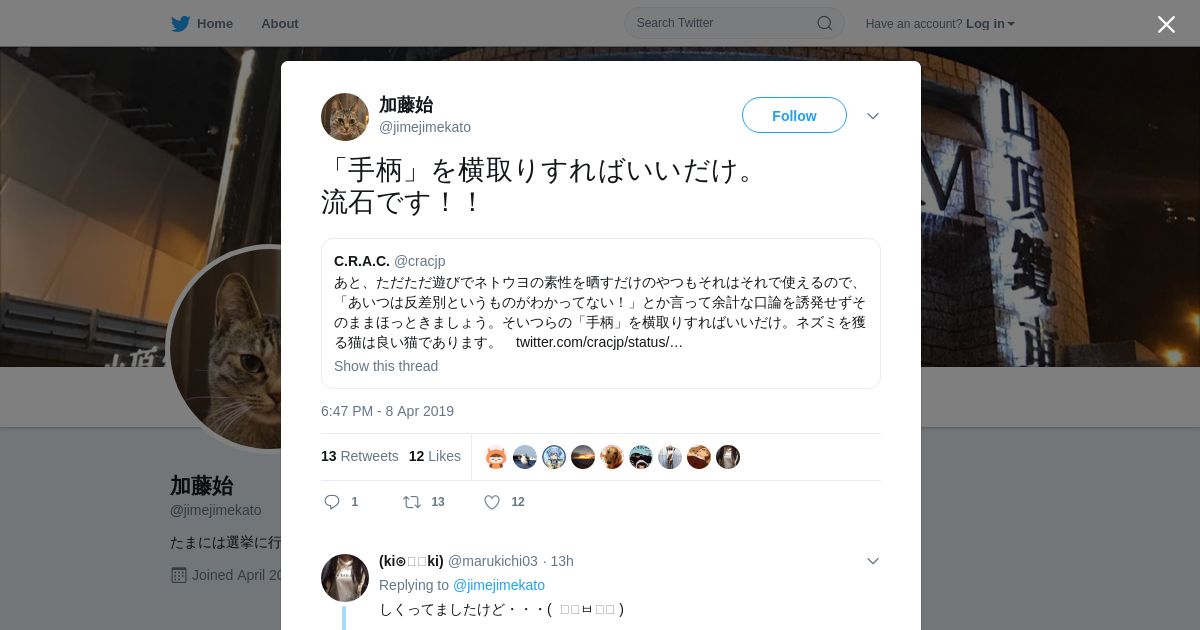 https://twitter.com:443/jimejimekato/status/1115430929122582529