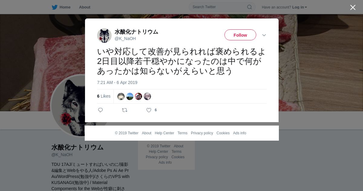 取得元URL: https://twitter.com:443/K_NaOH/status/1114533552710774785