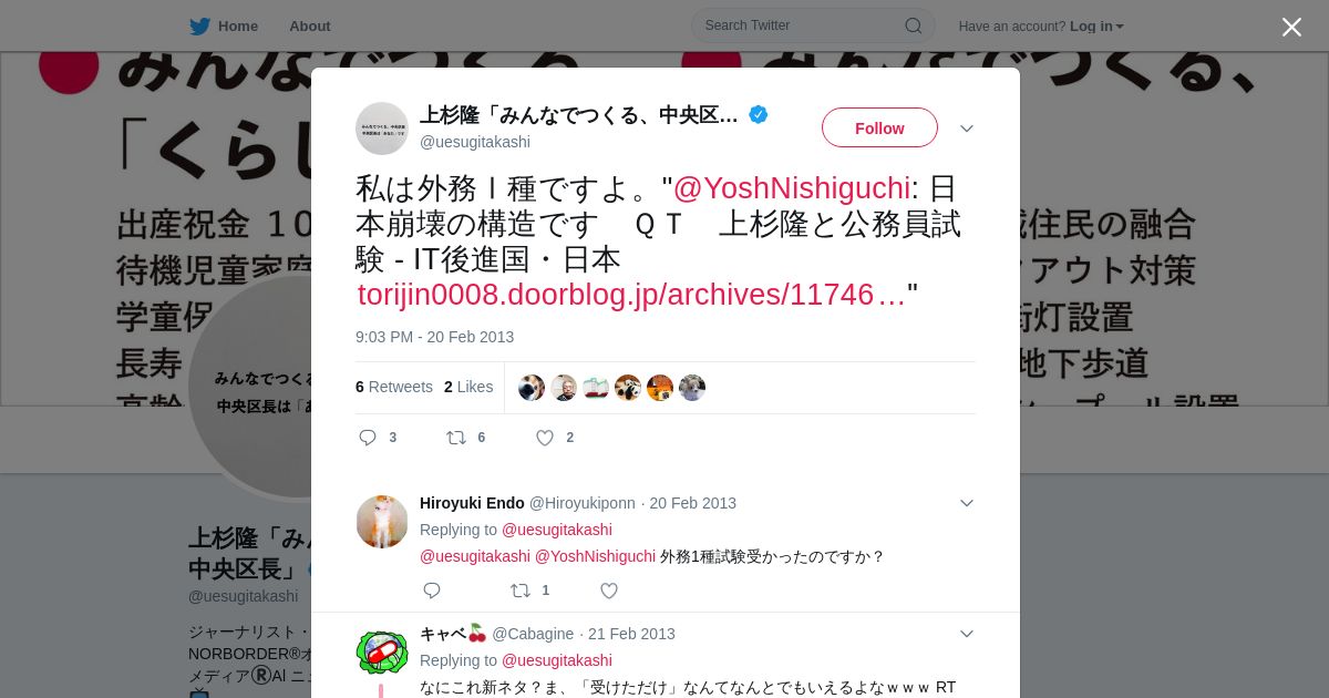 取得元URL: https://twitter.com:443/uesugitakashi/status/304456260286304256
