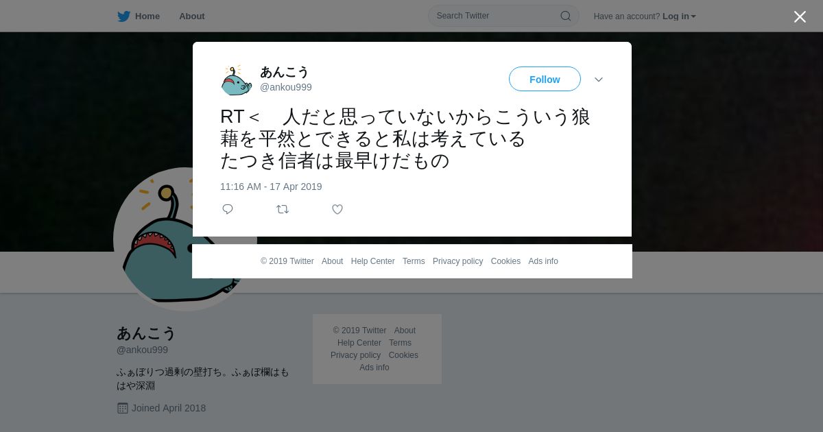 取得元URL: https://twitter.com:443/ankou999/status/1118578970356674560