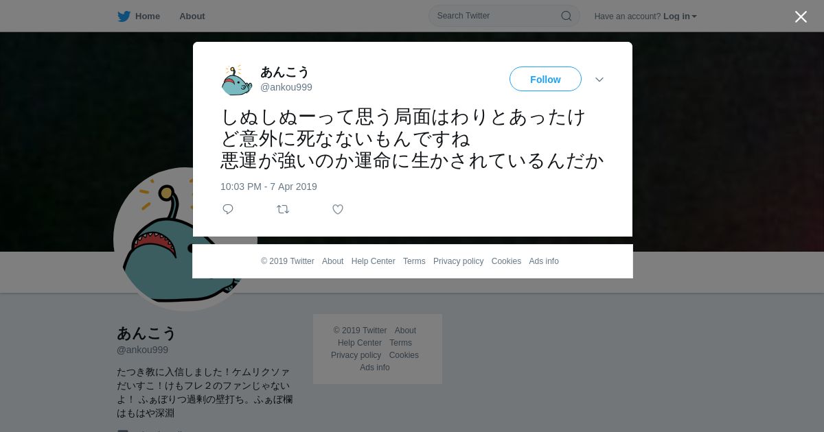 取得元URL: https://twitter.com:443/ankou999/status/1115118031816937473