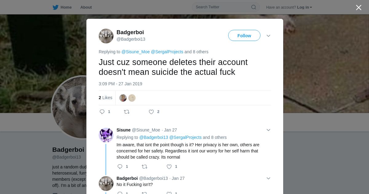 取得元URL: https://twitter.com:443/Badgerboi13/status/1089661622120001536