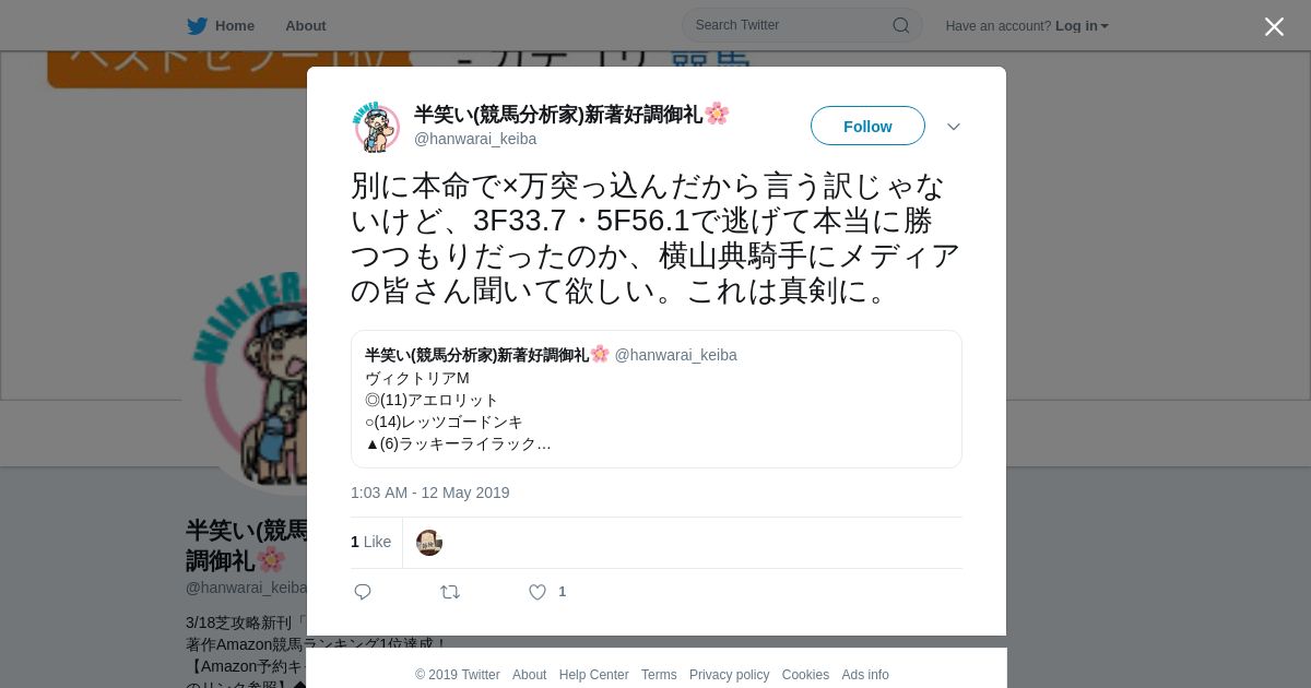 https://twitter.com:443/hanwarai_keiba/status/1127484323597246464