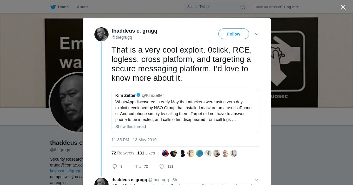 https://twitter.com:443/thegrugq/status/1128186995094634497