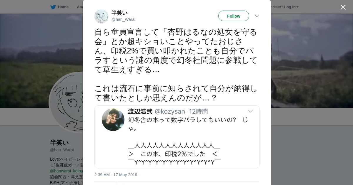 https://twitter.com:443/han_Warai/status/1129320413626916864