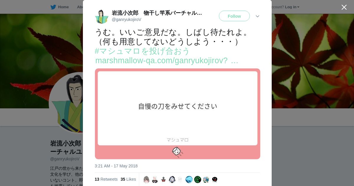 https://twitter.com:443/ganryukojiroV/status/997059550061592576