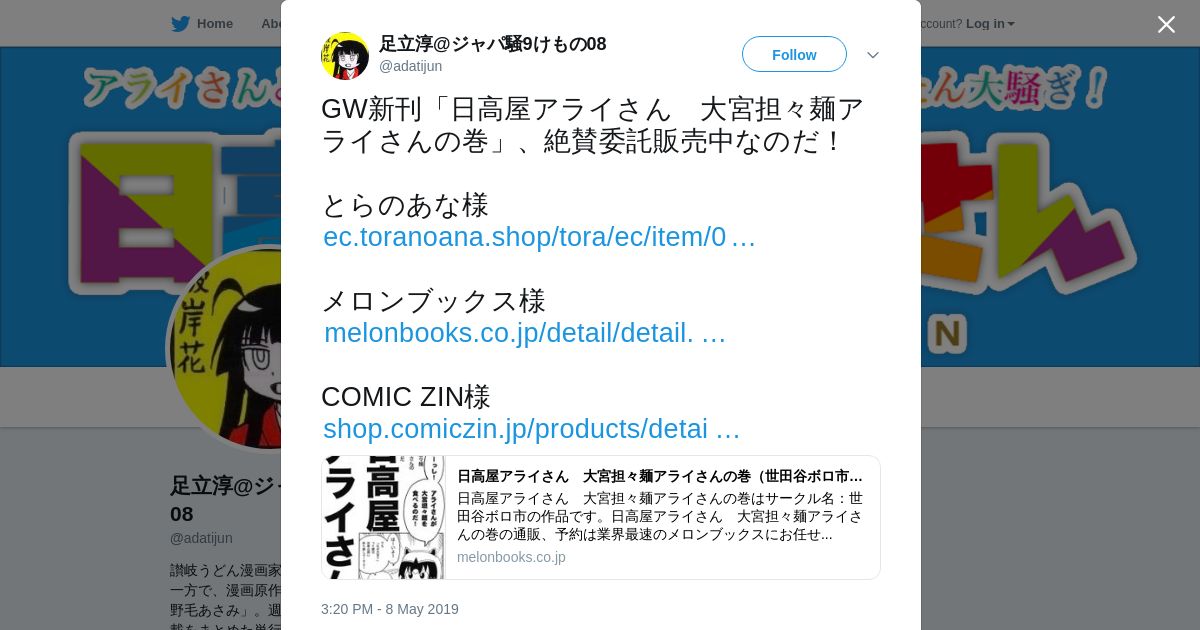 取得元URL: https://twitter.com:443/adatijun/status/1126250538180304896