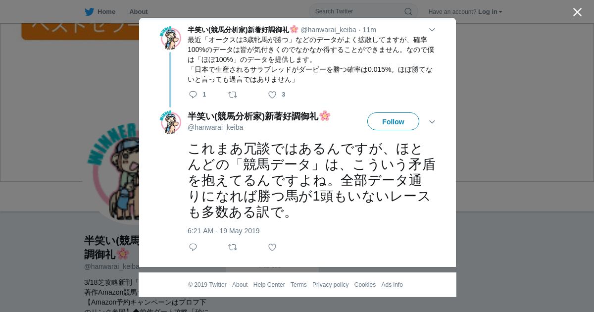 https://twitter.com:443/hanwarai_keiba/status/1130101047668555777