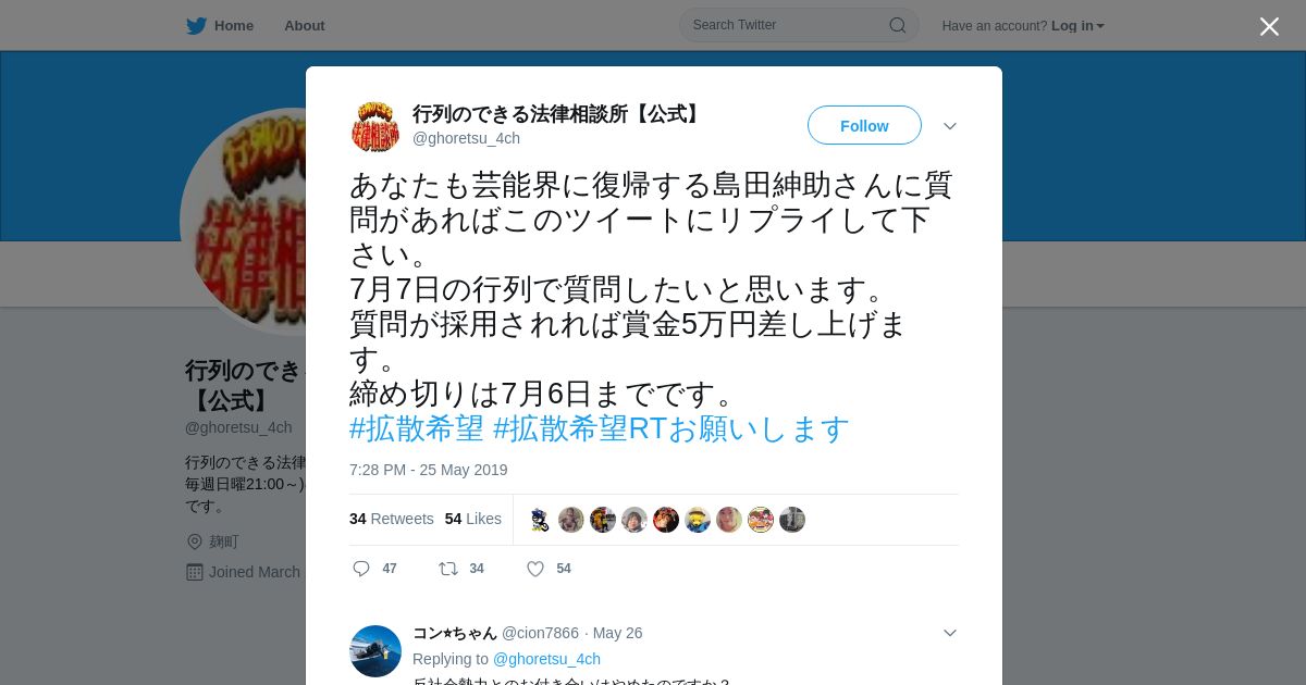 取得元URL: https://twitter.com:443/ghoretsu_4ch/status/1132473545018056710