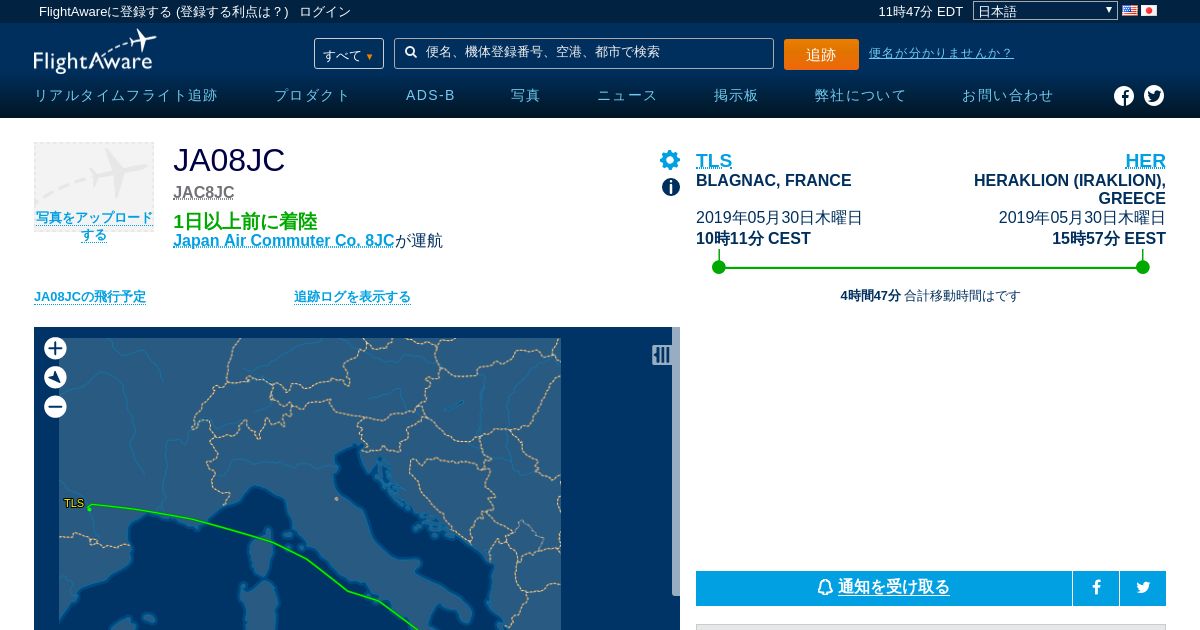 https://ja.flightaware.com:443/live/flight/JA08JC/history/20190530/0811Z/LFBO/LGIR
