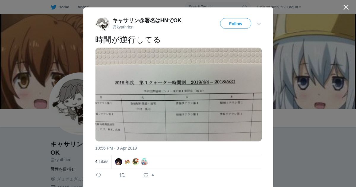 取得元URL: https://twitter.com:443/kyathrien/status/1113681783097151490