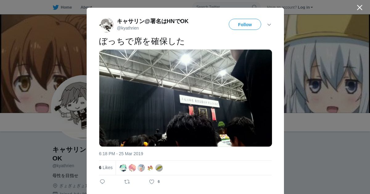 取得元URL: https://twitter.com:443/kyathrien/status/1110350199245819904