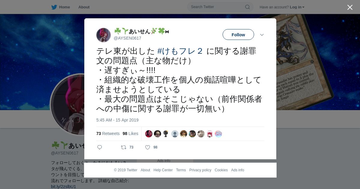 取得元URL: https://twitter.com:443/AYSEN0617/status/1117770818480590850