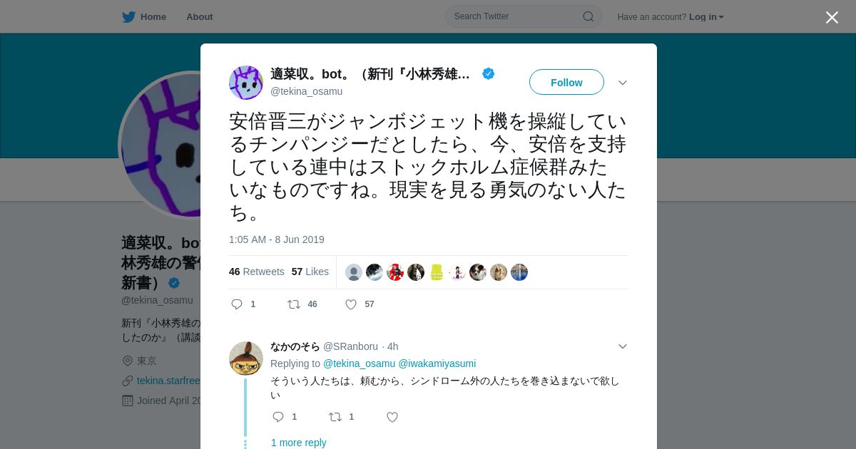 取得元URL: https://twitter.com:443/tekina_osamu/status/1137269386593484801