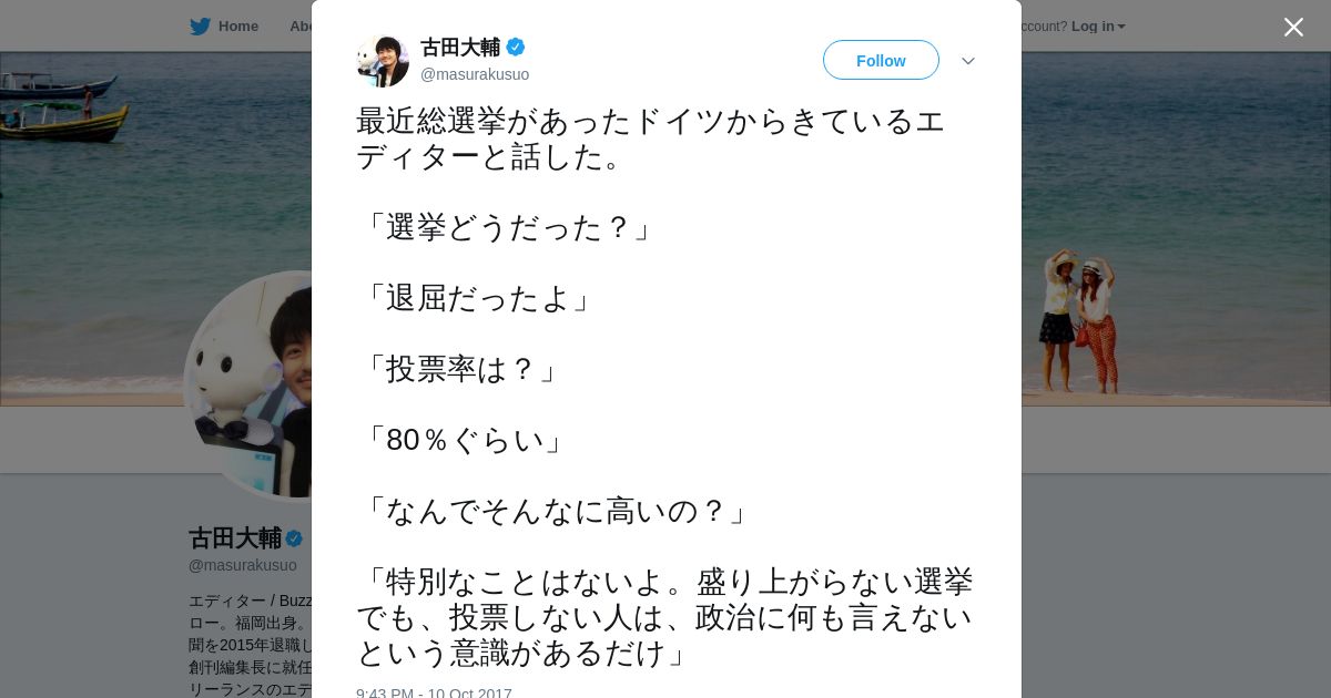 取得元URL: https://twitter.com:443/masurakusuo/status/917973951673962497