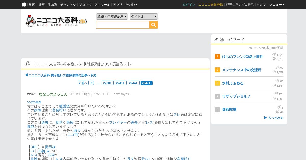 https://dic.nicovideo.jp:443/b/a/%E3%83%8B%E3%82%B3%E3%83%8B%E3%82%B3%E5%A4%A7%E7%99%BE%E7%A7%91%3A%E6%8E%B2%E7%A4%BA%E6%9D%BF%E3%83%AC%E3%82%B9%E5%89%8A%E9%99%A4%E4%BE%9D%E9%A0%BC/22471-