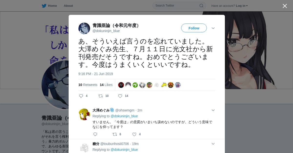 https://twitter.com:443/dokuninjin_blue/status/1142285321087750144