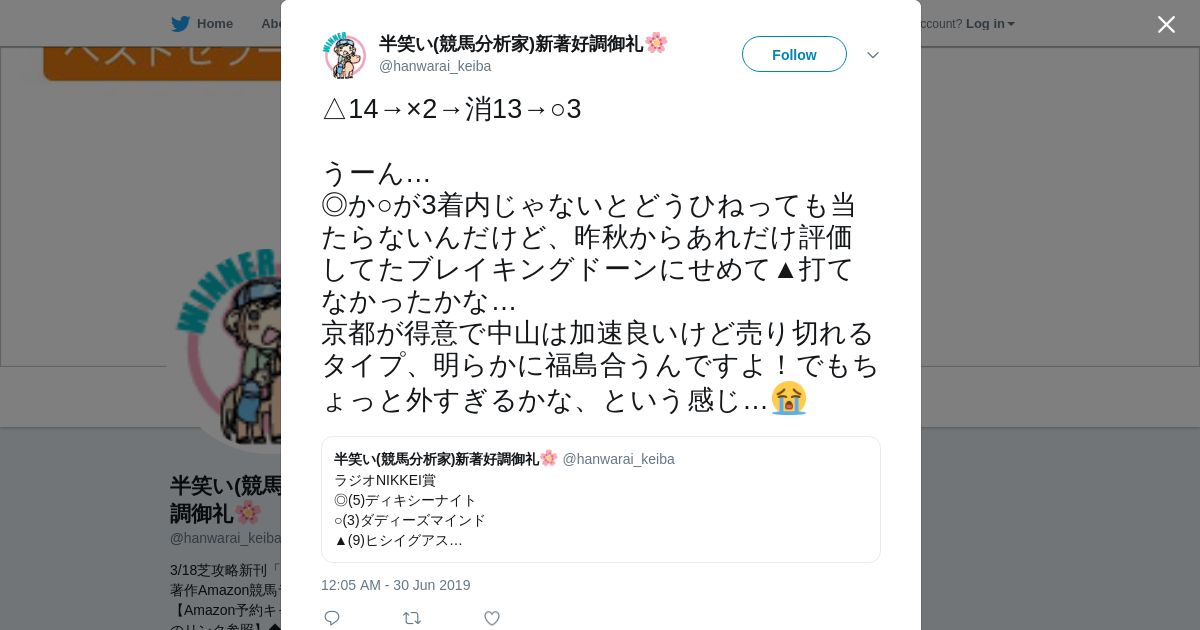 https://twitter.com:443/hanwarai_keiba/status/1145226832733564929