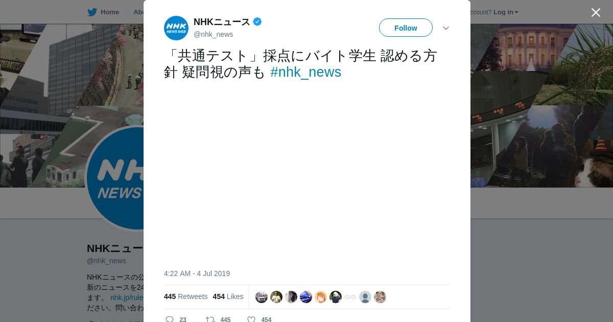 取得元URL: https://twitter.com:443/nhk_news/status/1146740946920341504