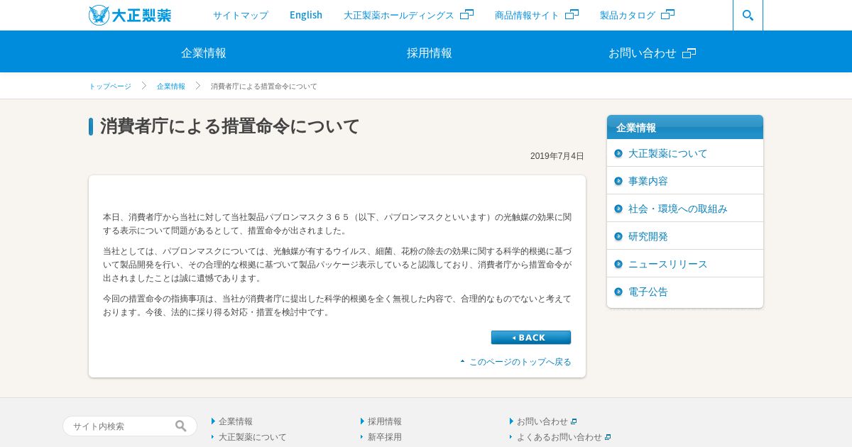https://www.taisho.co.jp:443/company/release/2019/2019070401.html