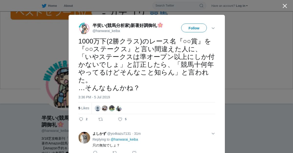 https://twitter.com:443/hanwarai_keiba/status/1147273067854327808