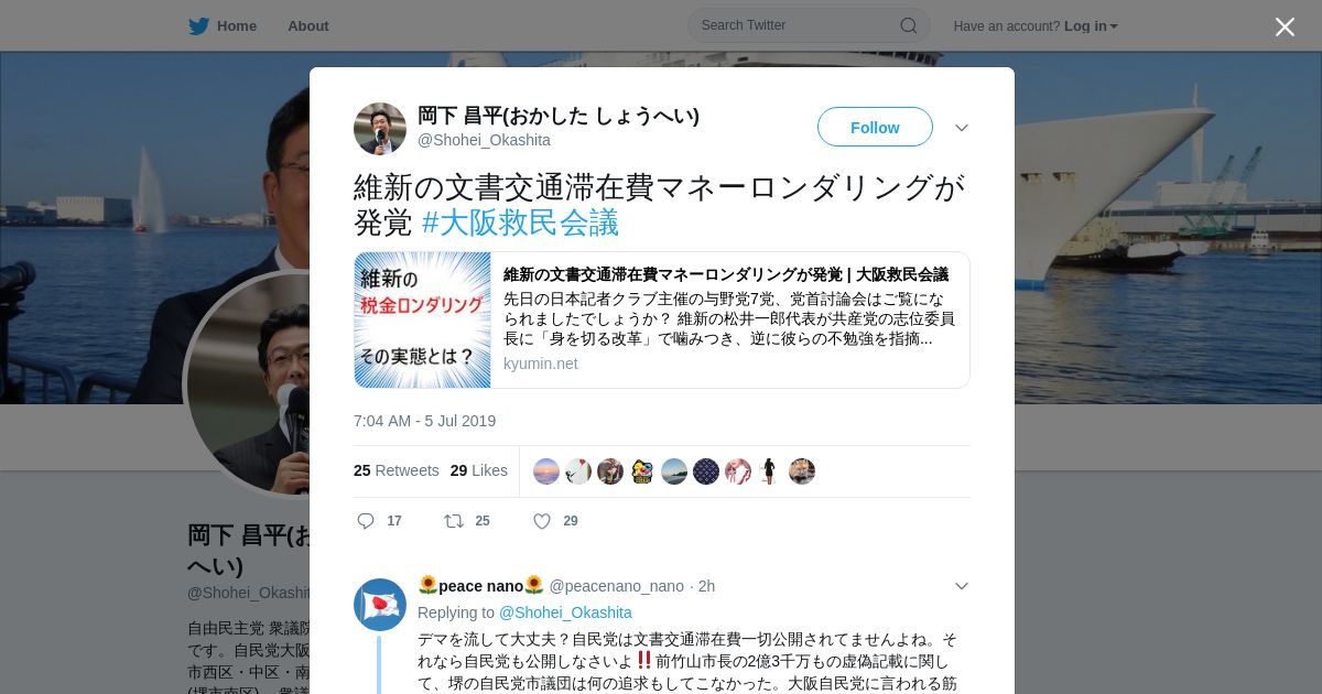 取得元URL: https://twitter.com:443/Shohei_Okashita/status/1147144264159096832