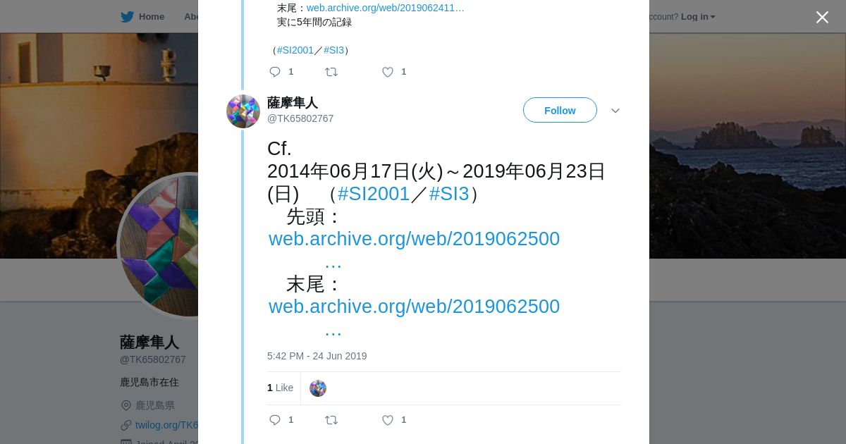 取得元URL: https://twitter.com:443/TK65802767/status/1143318419732721664