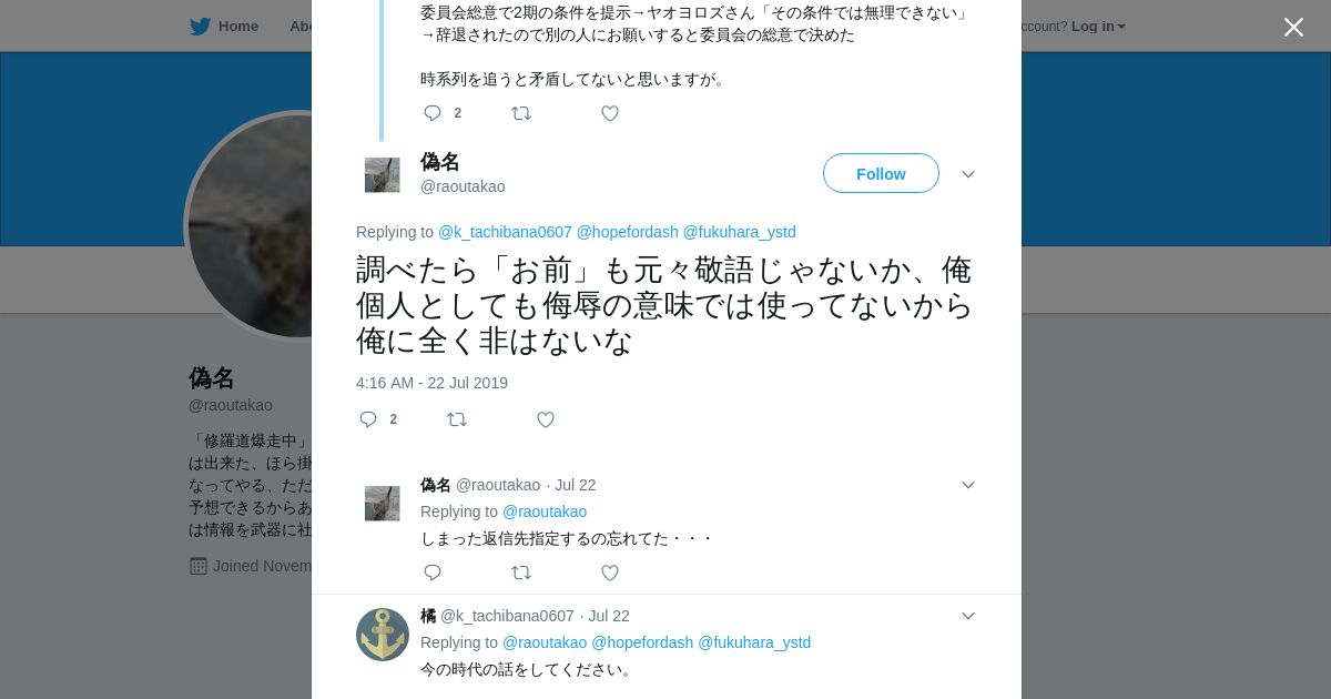 取得元URL: https://twitter.com:443/raoutakao/status/1153262413162008577