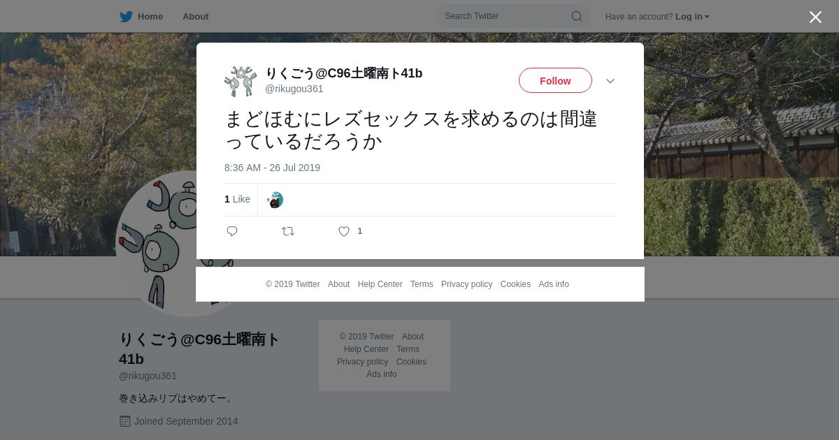 取得元URL: https://twitter.com:443/rikugou361/status/1154777446027341825