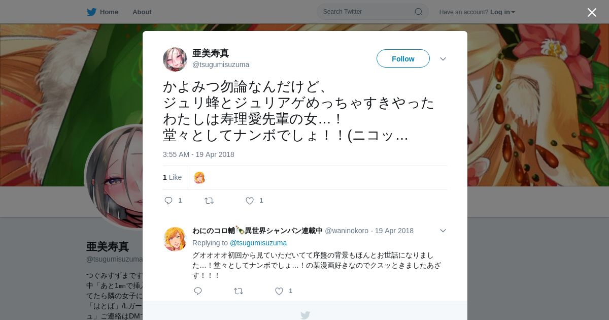 https://twitter.com:443/tsugumisuzuma/status/986921221546622976?s=21