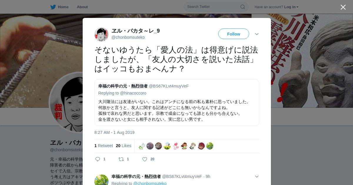 https://twitter.com:443/chonbomsuteko/status/1156949495407452161