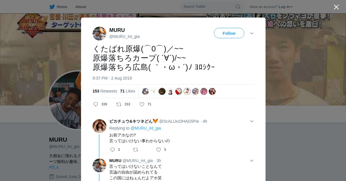 取得元URL: https://twitter.com:443/MURU_int_gia/status/1157510870454288384?s=20