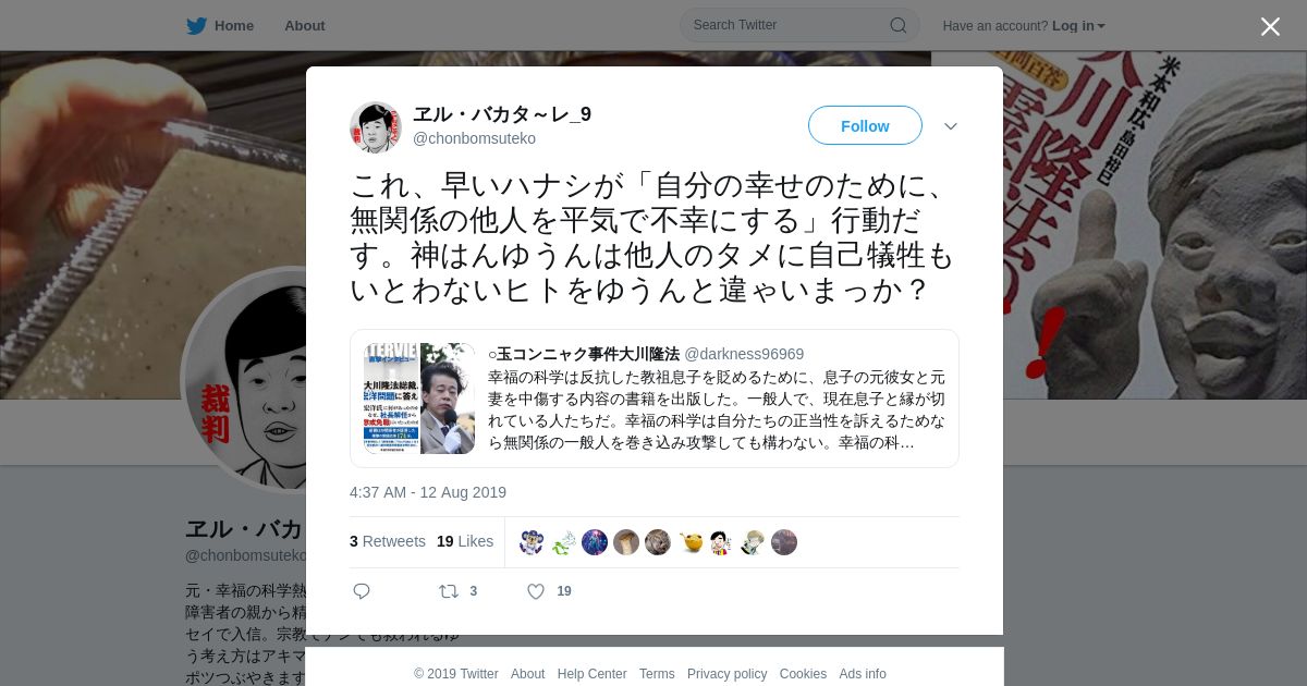 https://twitter.com:443/chonbomsuteko/status/1160878020552359937
