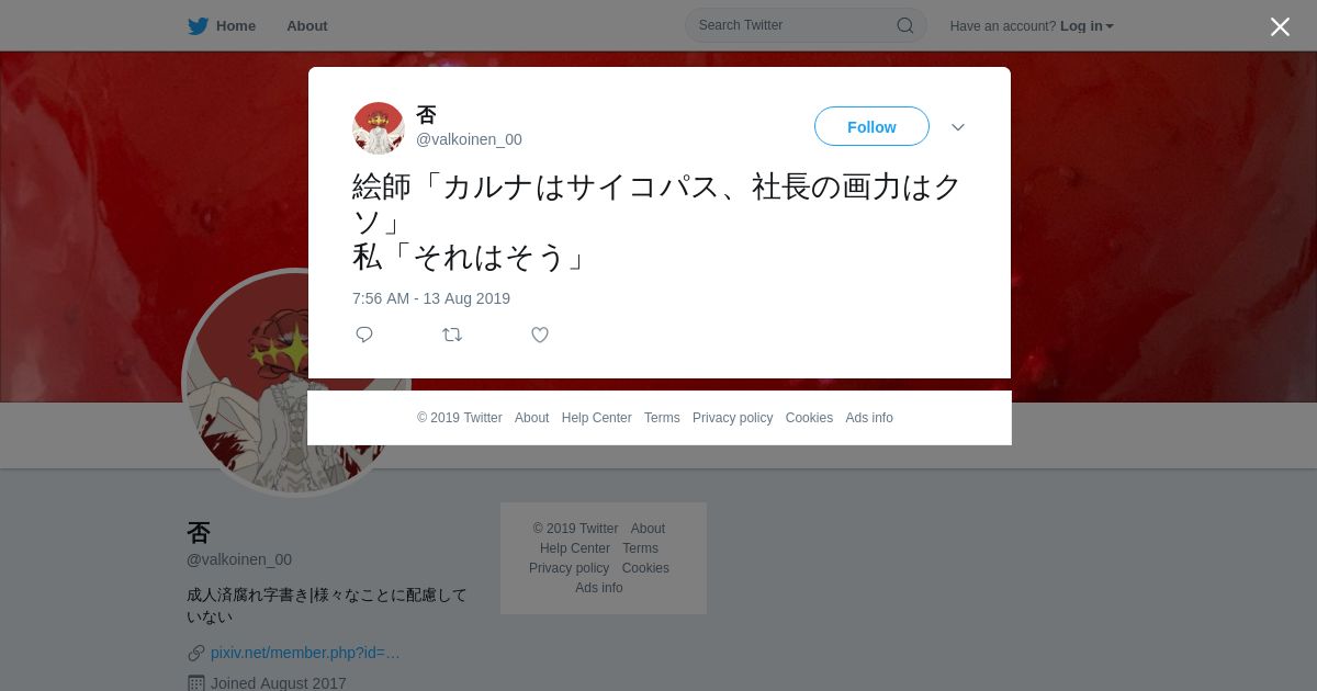 取得元URL: https://twitter.com:443/valkoinen_00/status/1161290324523794435?s=20