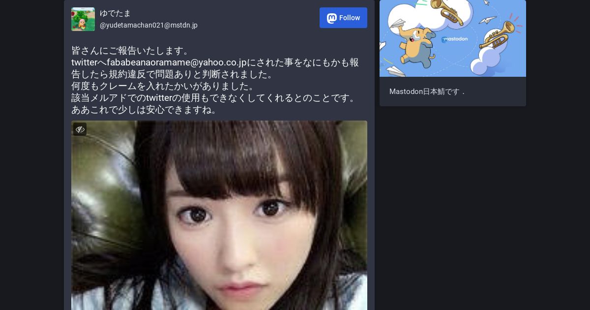 https://mstdn.jp:443/@yudetamachan021/102640235433217289