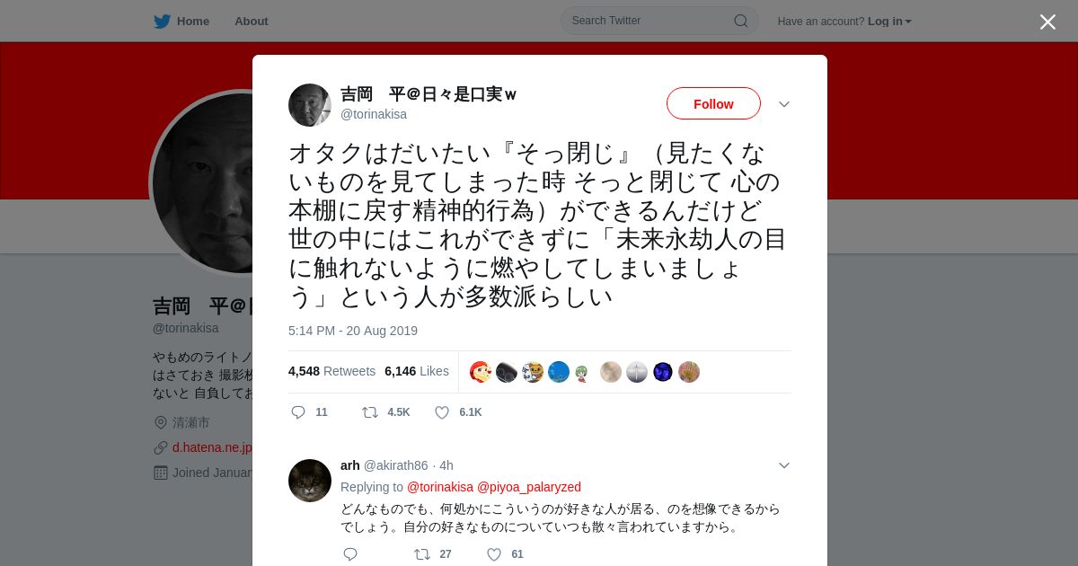 取得元URL: https://twitter.com:443/torinakisa/status/1163967694485377024