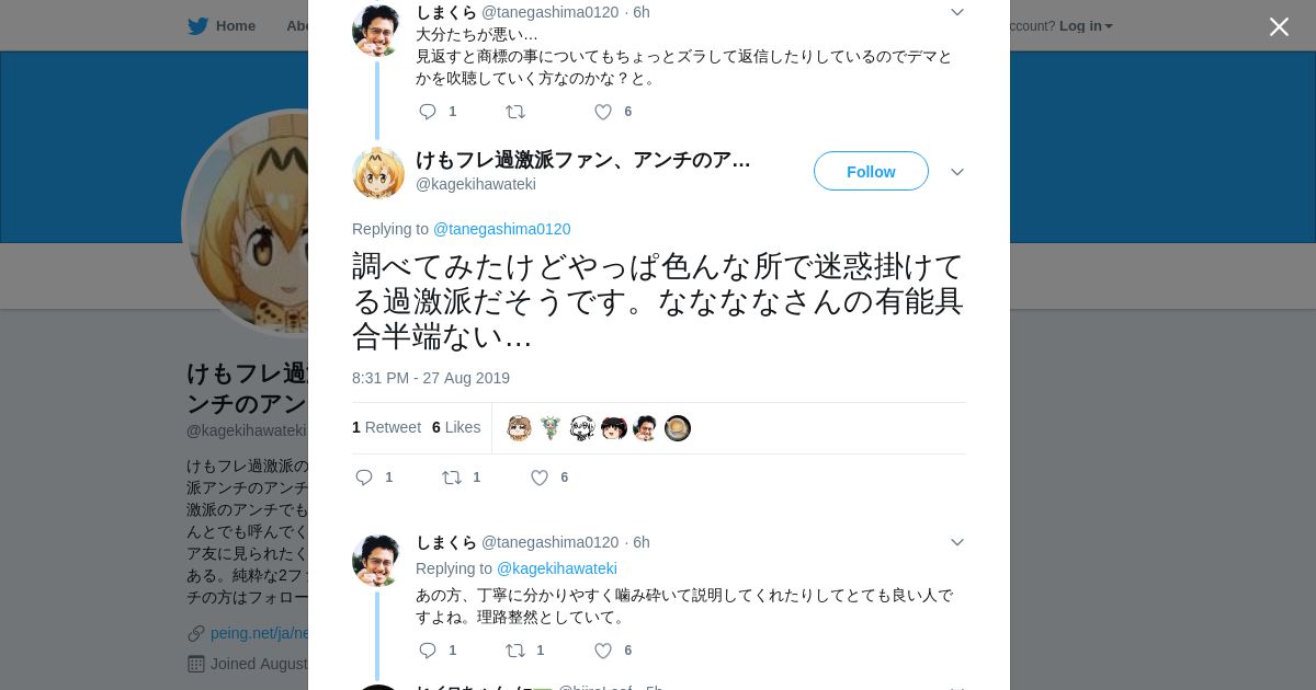 取得元URL: https://twitter.com:443/kagekihawateki/status/1166553893419048960