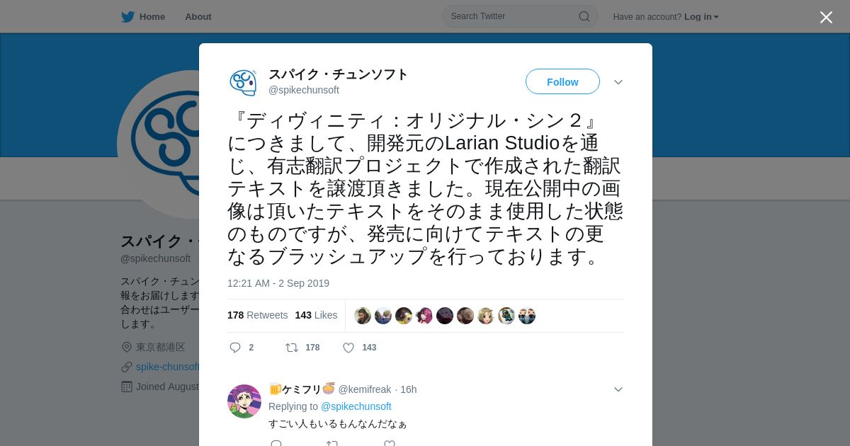 https://twitter.com:443/spikechunsoft/status/1168423762913415168
