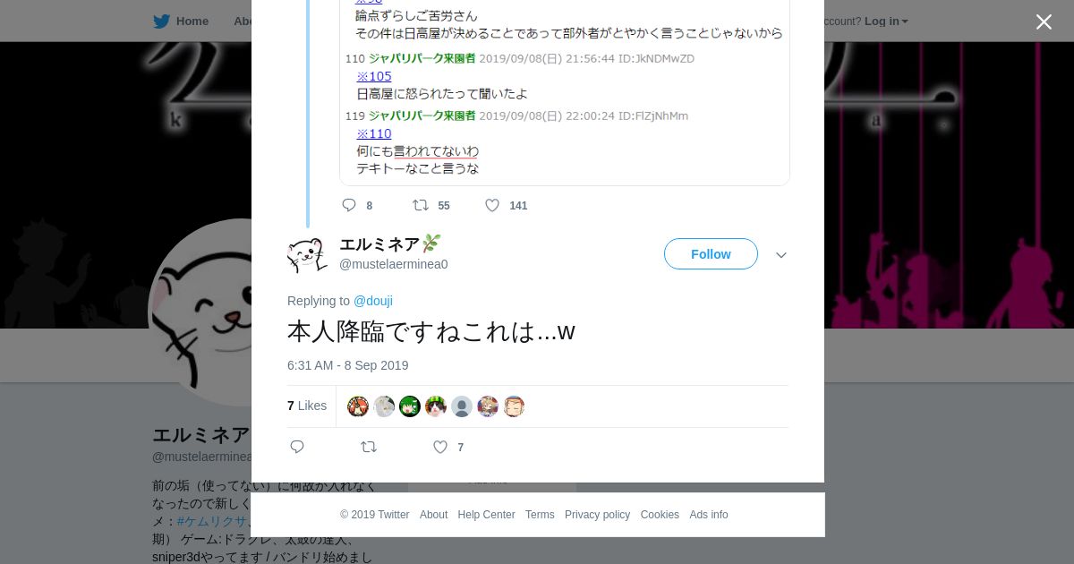 取得元URL: https://twitter.com:443/mustelaerminea0/status/1170691068658163717