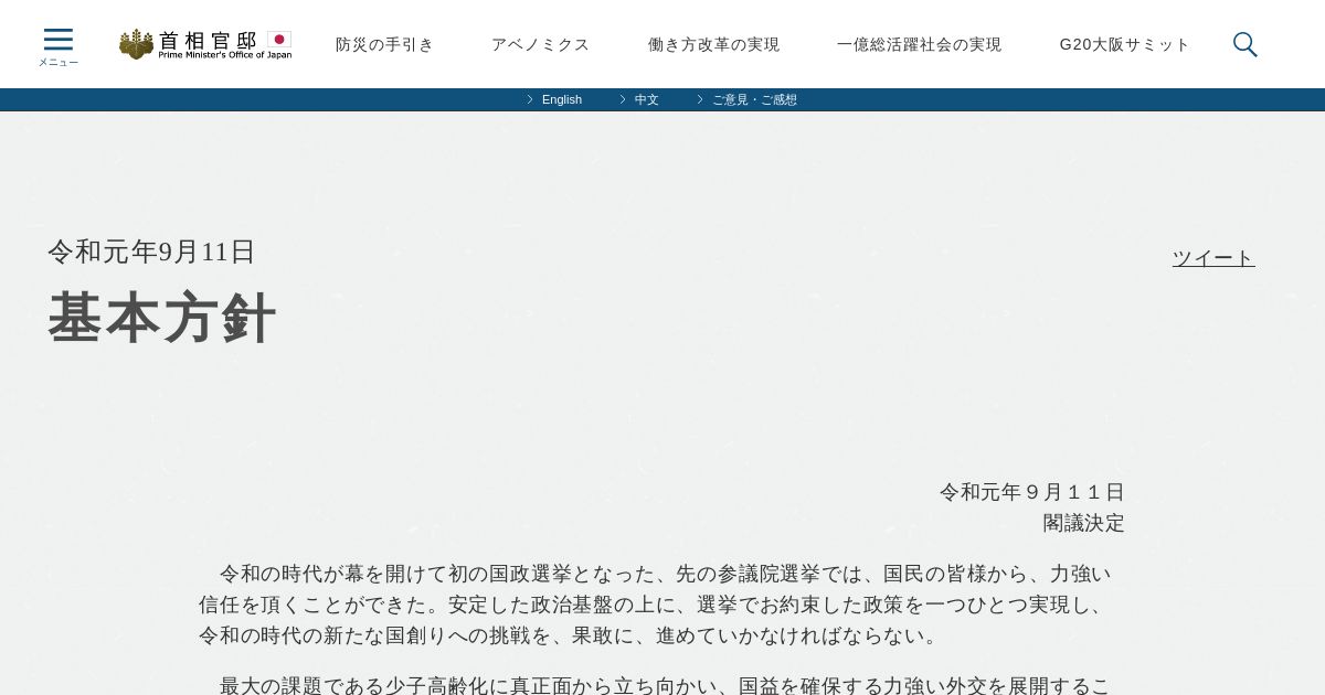 https://www.kantei.go.jp:443/jp/kakugikettei/2019/0911kihonhousin.html