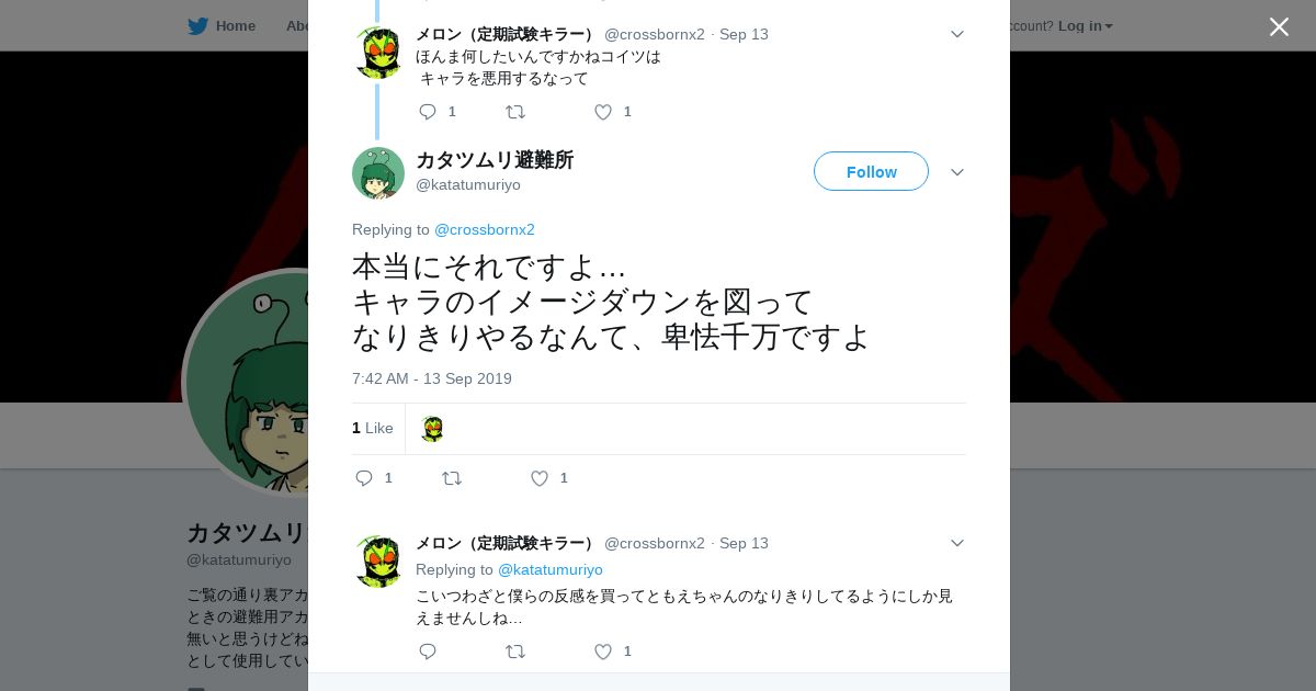 取得元URL: https://twitter.com:443/katatumuriyo/status/1172521040385232897