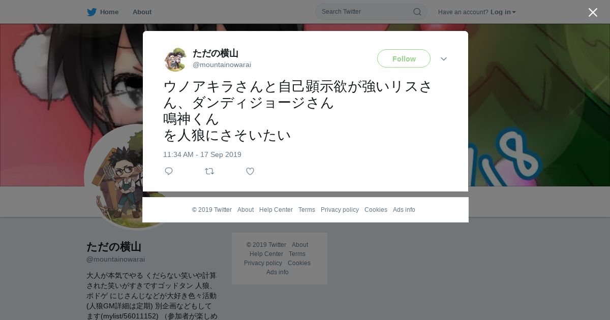 取得元URL: https://twitter.com:443/mountainowarai/status/1174028886050369536